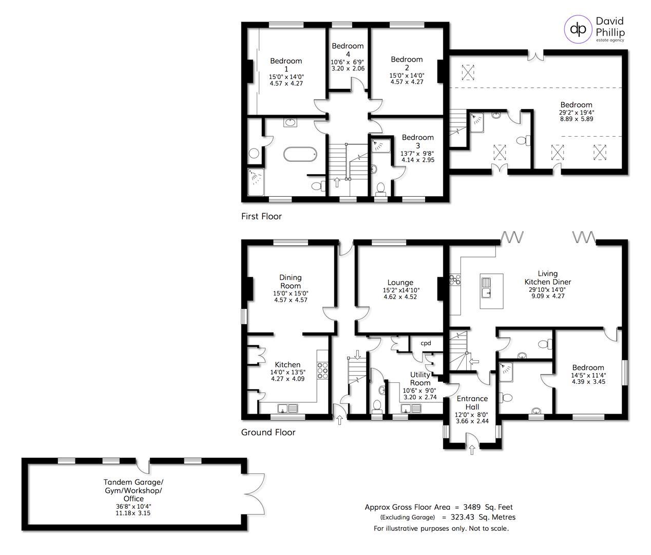 The property is approached via a secure electric gated entrance leading to a private driveway with ample parking. A tandem garage offers potential for use as a gym, workspace, or home office. Within the garden there is a covered outdoor decking area with power—ideal for barbecuing even in inclement weather—as well as gated vehicular access directly to the garden.